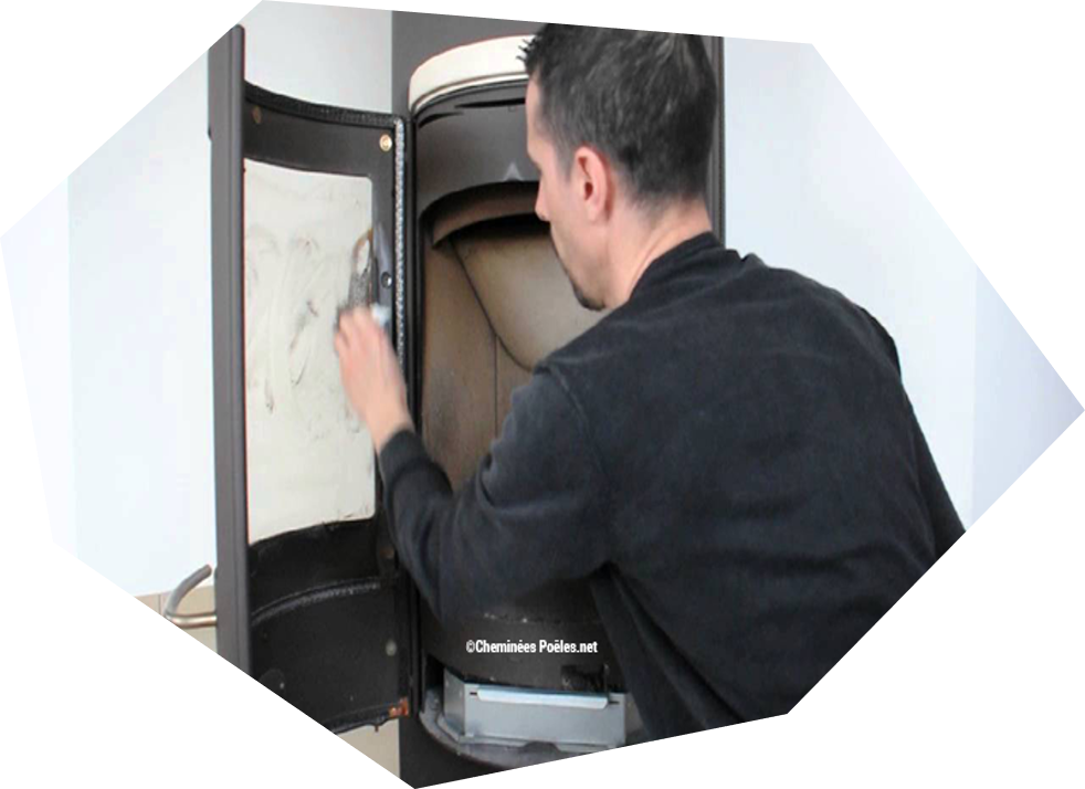 Pour le nettoyage, il y a plusieurs possibilités : un nettoyage classique avec des produits spécifiquement conçus pour nettoyer ce type de dépôt ou un nettoyage plus naturel avec des cendres et un morceau de tissu ou d’essuie-tout pour décrocher les dépôts sur la vitre. Attention d’utiliser des produits conçus pour les poêles et de ne mettre ni produits d’entretien ni cendres sur les joints et la peinture car leur caractère abrasif risque d’endommager ces parties plus sensibles de l’appareil.