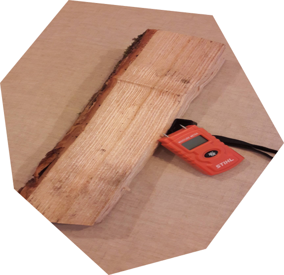 Le taux d’humidité du bois doit être inférieur à 18% pour permettre une combustion de qualité. Vous pouvez mesurer cela avec un humidimètre (vendu en magasin de bricolage) ou regarder vos bûches : si elles sont grisées et fendillées aux extrémités et si « ça sonne creux » lorsque vous les cognez l’une contre l’autre, alors on peut considérer que ces bûches sont suffisamment sèches.